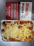 1/2 tray or one full tray of meatball ziti with marinera sauce and cheese freshly baked. Same size of a garden salad and garlic bread