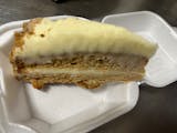 Moist cake, spiced with cinnamon and frosted with cream cheese frosting.