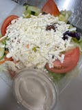 Tomatoes, cucumbers, onions, olives, and feta cheese.